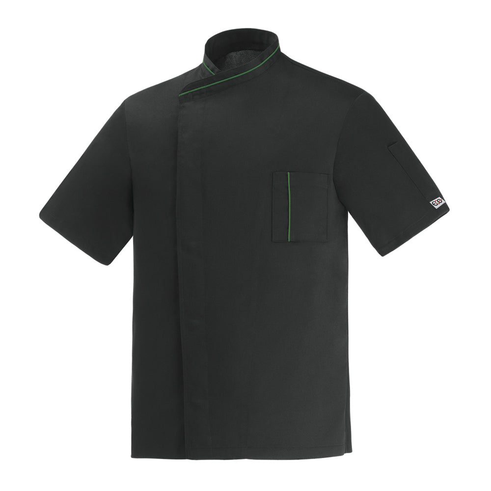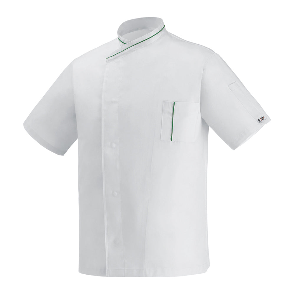 Pavāra jaka ar spiedpogām, īsām piedurknēm un mugurpusi no Air Plus auduma.