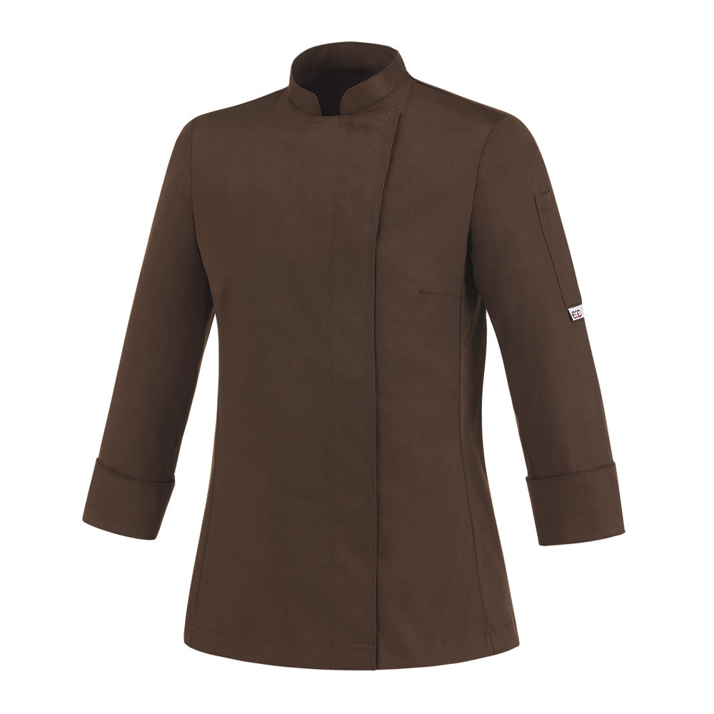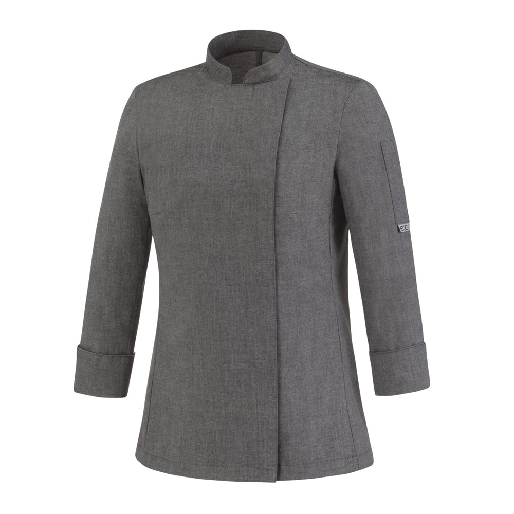 Sieviešu tunika ar spiedpogām, izgatavota no 65% poliestera, 35% kokvilnas auduma.
