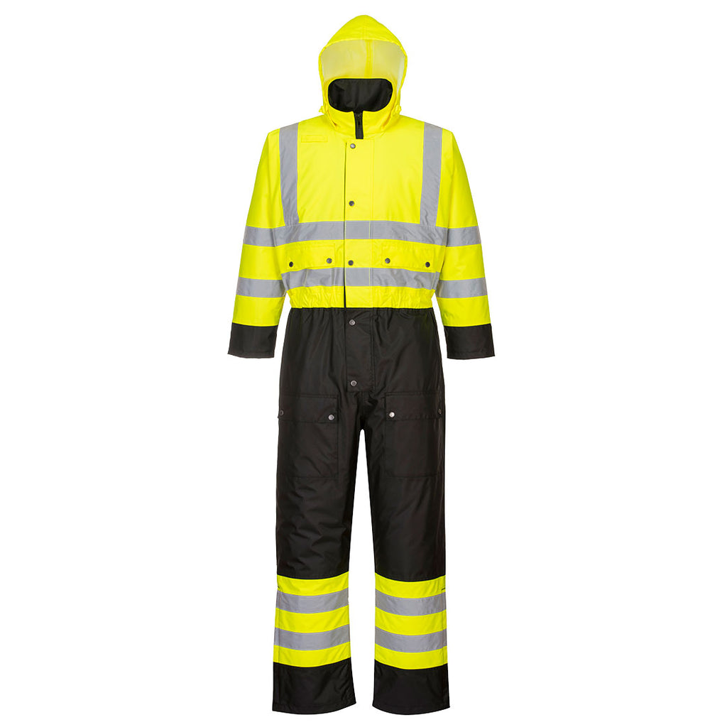 Ziemas kombinezons, kas ir pilnībā praktisks un drošs apģērba gabals, aizsargā ķermeni no mitruma, vienlaikus nodrošinot drošību. Stepēta odere nodrošina papildu siltumu.